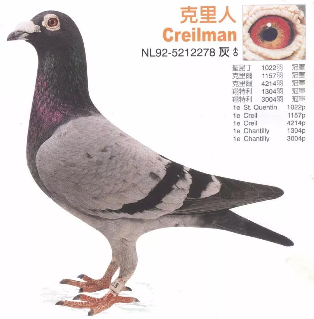 对于夏拉肯来说“克里人”号已经是他养鸽生涯的传奇了,这羽雄鸽比赛和作种的价值一样,它获得过4214羽、3004羽和1157羽比赛的1位,为黄金配对“天马”号配“丝丝”号的直子。