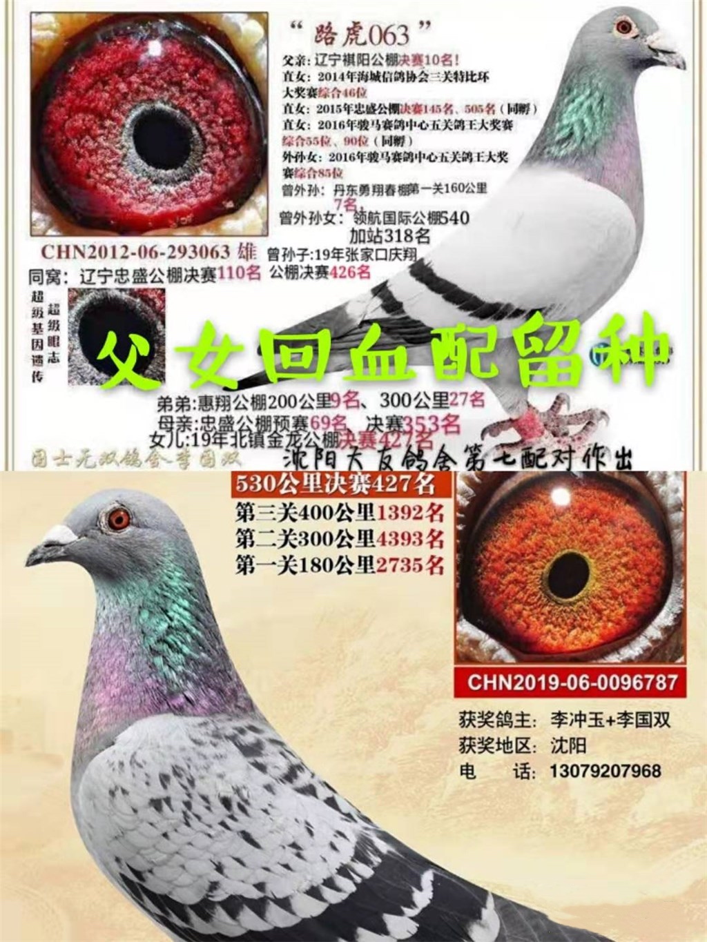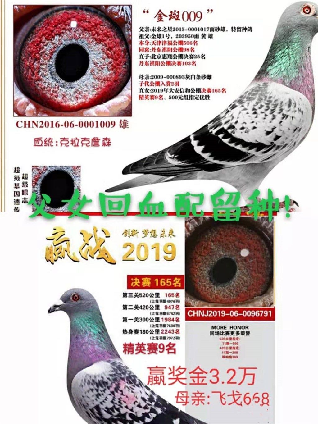 顺便提一下:其父母都是血统鸽。首次近亲作育出赛应该也算是成功了吧!