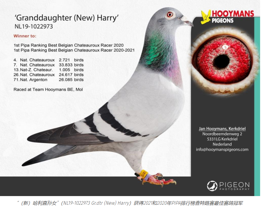 “(新)哈利直孙女”由胡曼斯比利时战队使翔,获得PIPA排行榜查特路赛最佳赛鸽
