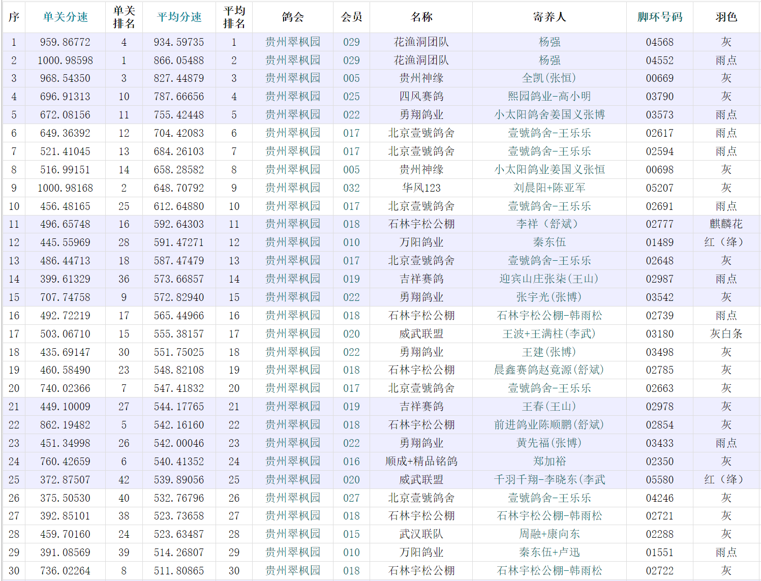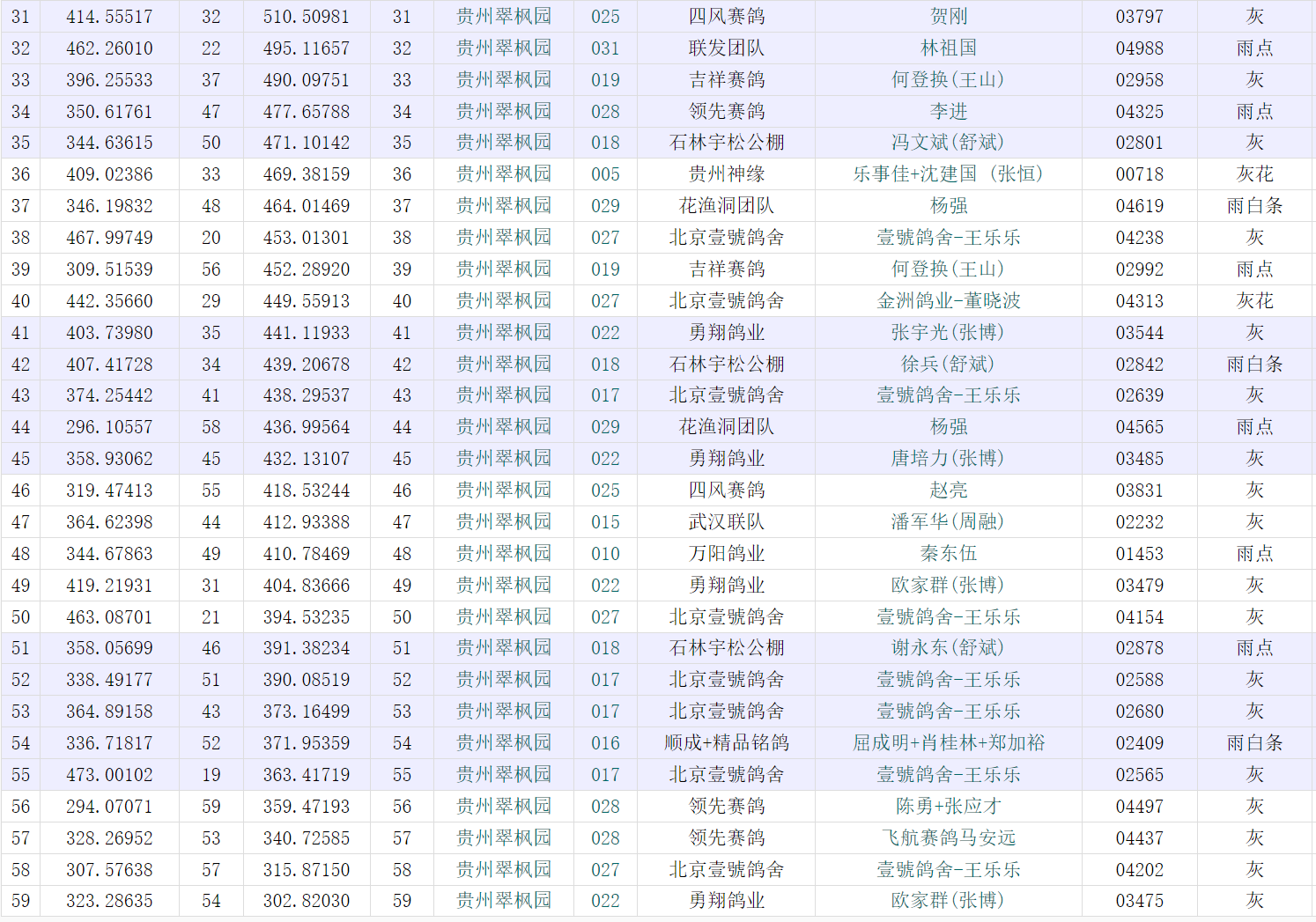 以下是有效归巢的59羽赛鸽: