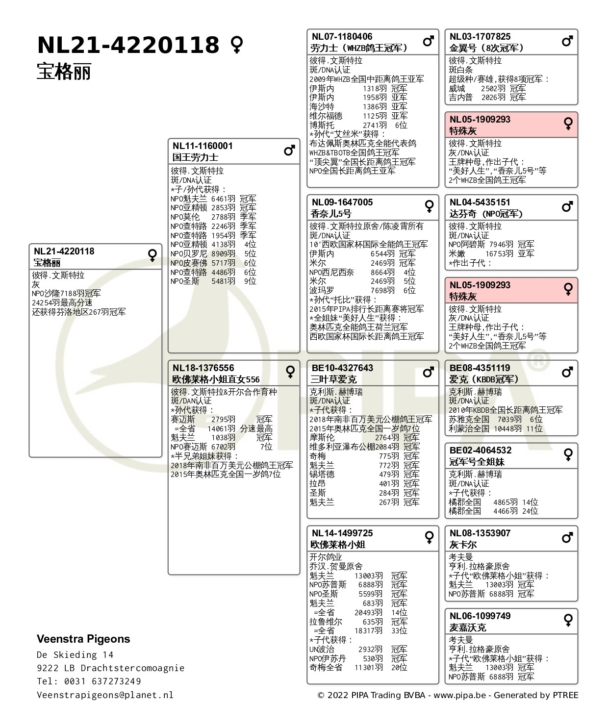 “卡地亚直孙女485”作为幼鸽获得NPO沙隆48位。2021年她是表现最出色的一岁鸽,2022年她再次展现超强实力,又取得沙隆赛7,469羽48位。