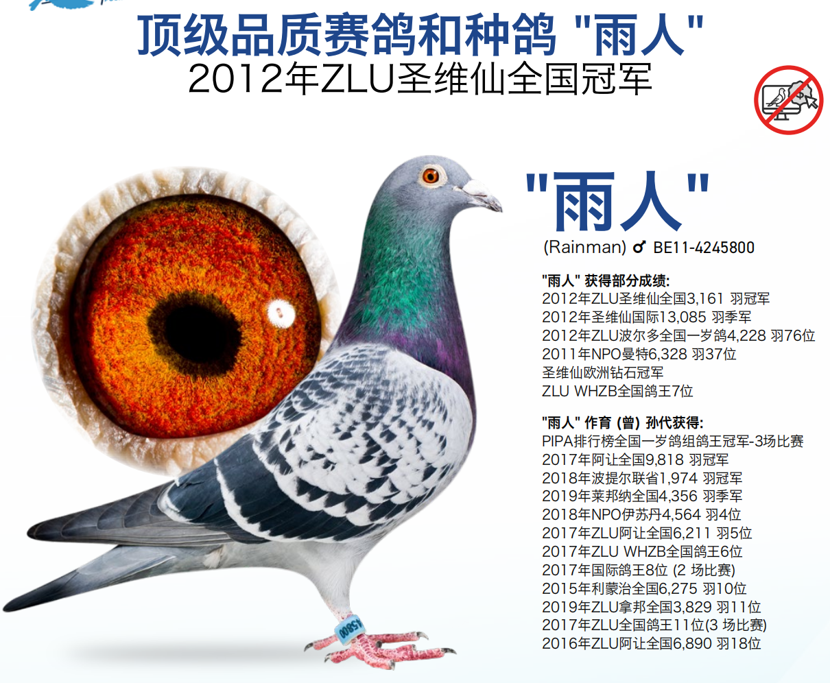 马汀·德波特只比超长距离赛事,培养了一支适应国际马拉松赛事的顶级鸽系。他最有名的赛鸽“雨人”便是在下雨天归返的2012年圣维仙全国冠军。今年的圣维仙赛事是炎热的逆风天气,马汀·德波特的鸽子也表现很好,印证了他的“雨人”鸽系擅长飞坏天气的特点。