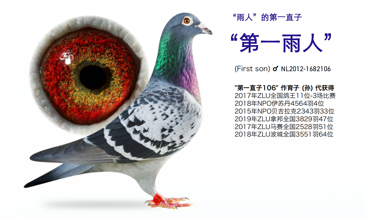 第二羽归巢鸽获得荷兰全国26位,环号NL21-1239979,是马汀·德波特当家的“雨人”血系。父亲本身是2020年波城全国4255羽20位,是“第一雨人”的直孙。母亲“未来雨人”则是“第一雨人”的外孙女。“第一雨人”是2012年圣维仙全国冠军“雨人”的第一直子,超级种鸽,作于子孙代在超长距离赛事中获奖无数。