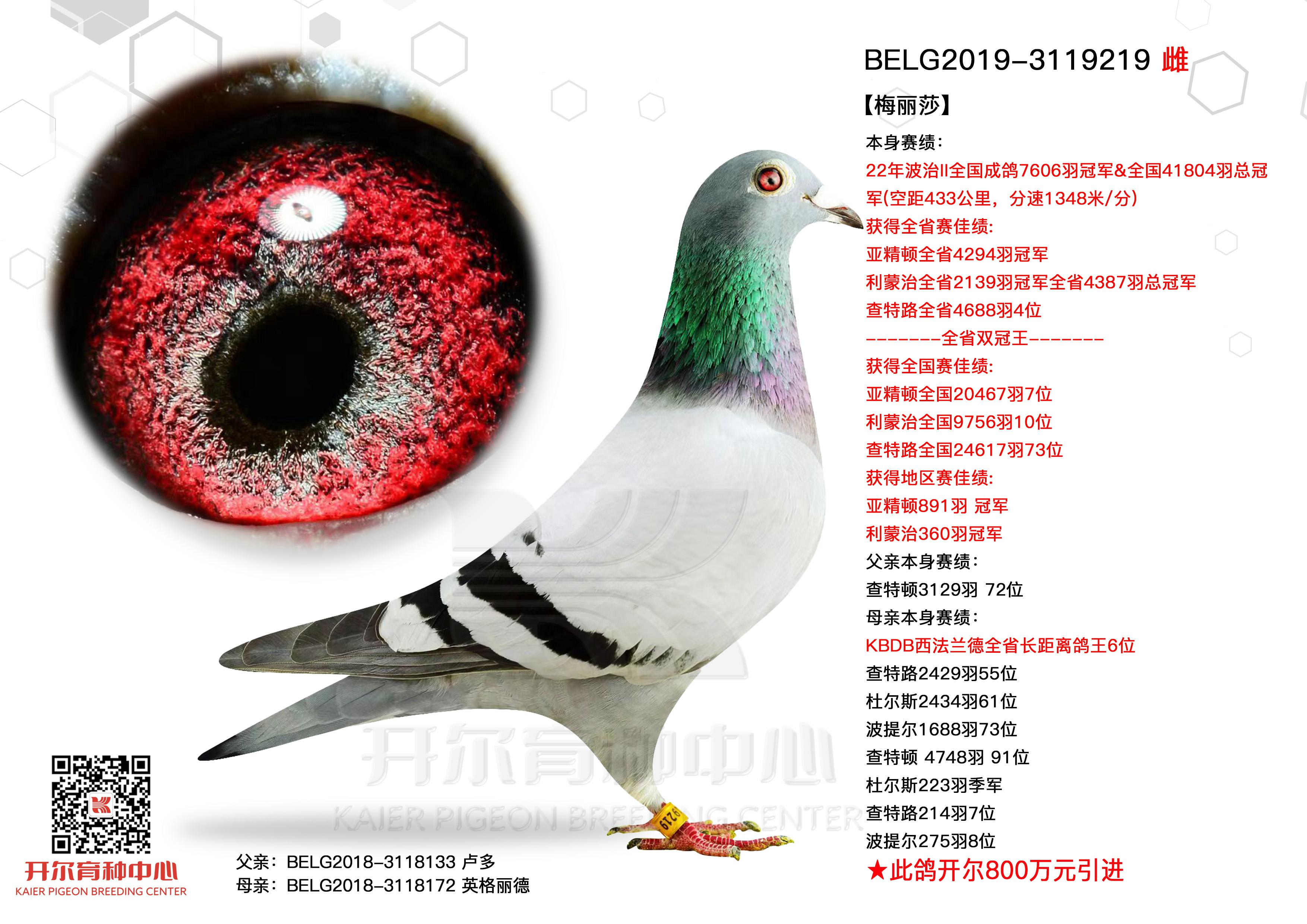 母亲“英格丽德”同样赛绩强悍,多次参加比赛留下亮眼表现。获得KBDB西法兰德全省长距离鸽王6位,杜尔斯全国223羽季军,查特路全国赛214羽7位,查特路全省2429羽55位,杜尔斯全省2434羽61位等成绩。