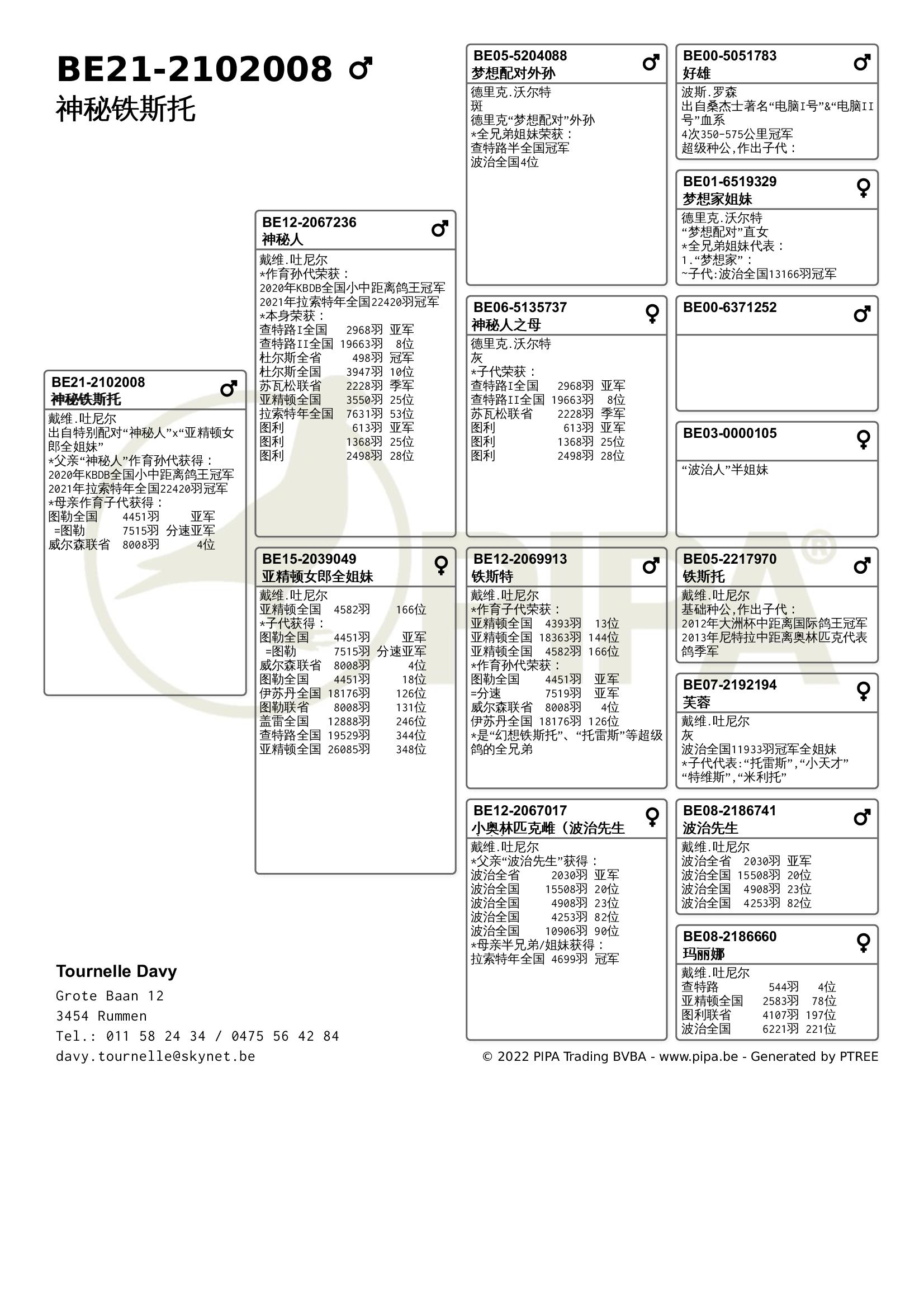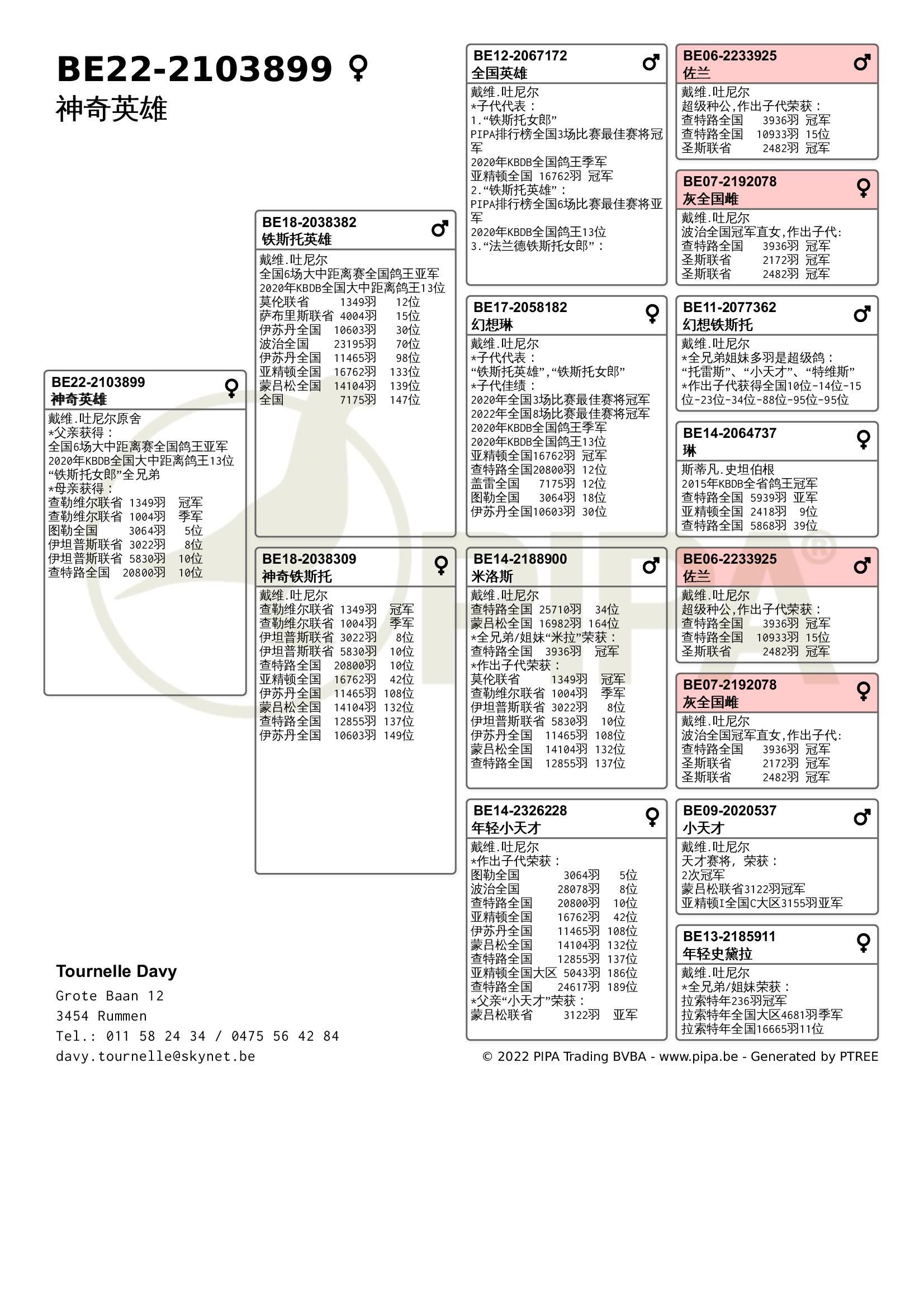 现在尊贵赛鸽联合PIPA上线了戴维.吐尼尔鸽舍面向中国鸽友的“铁斯托”血系赛鸽拍卖专场,12月15号尊贵拍卖小程序直播截拍。这次将提供10羽戴维.吐尼尔鸽舍的优质种鸽,这些赛鸽全部都是出自“铁斯托”血系,父母同辈都有着惊人的赛绩。
