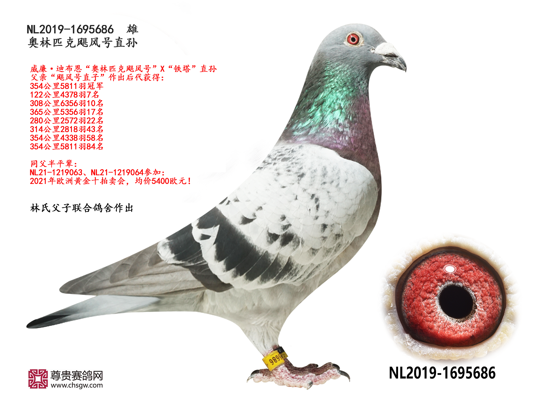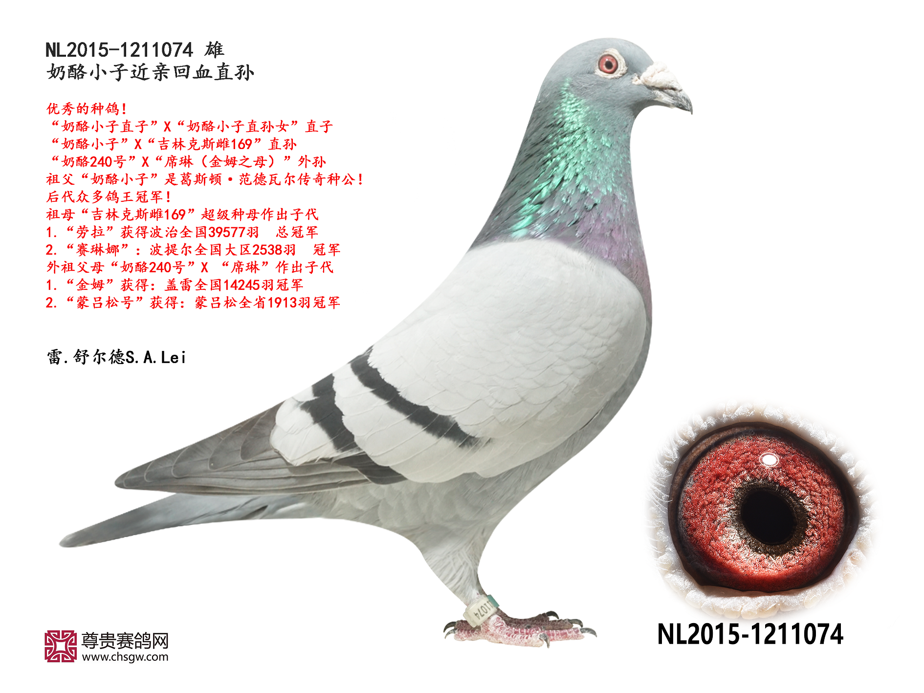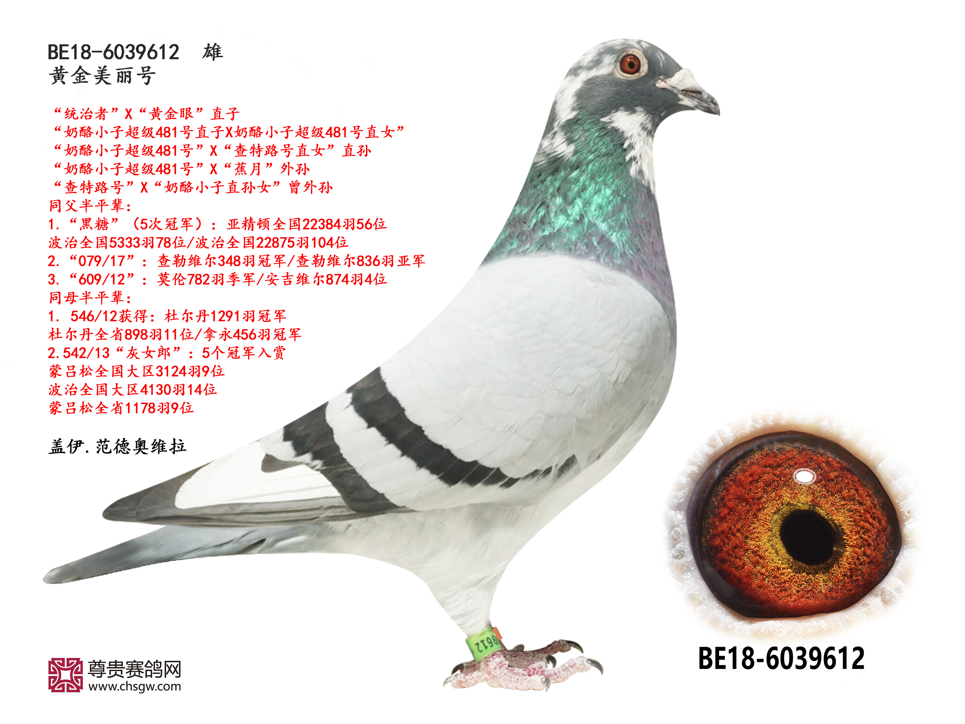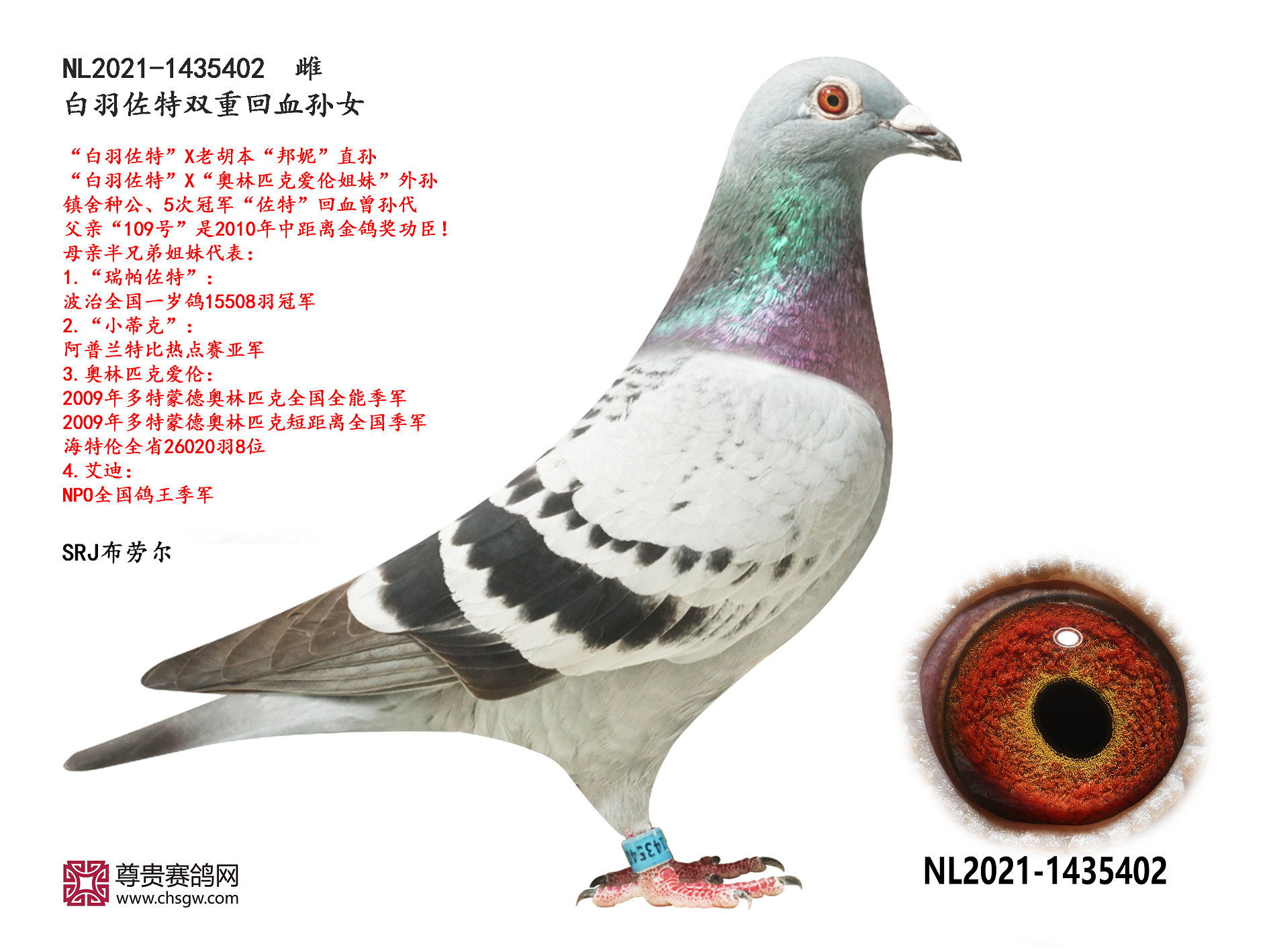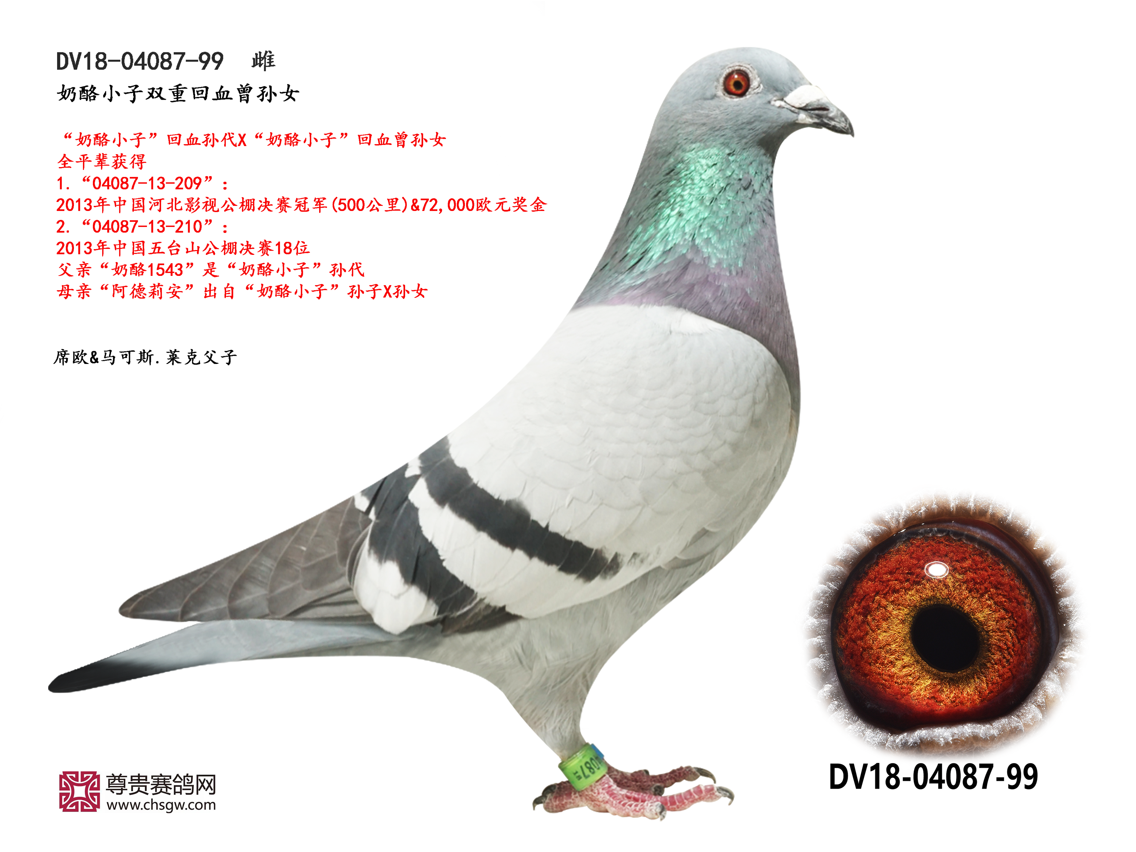 ——父亲“奶酪佐特”是波治全国15508羽冠军“瑞帕佐特”的直孙