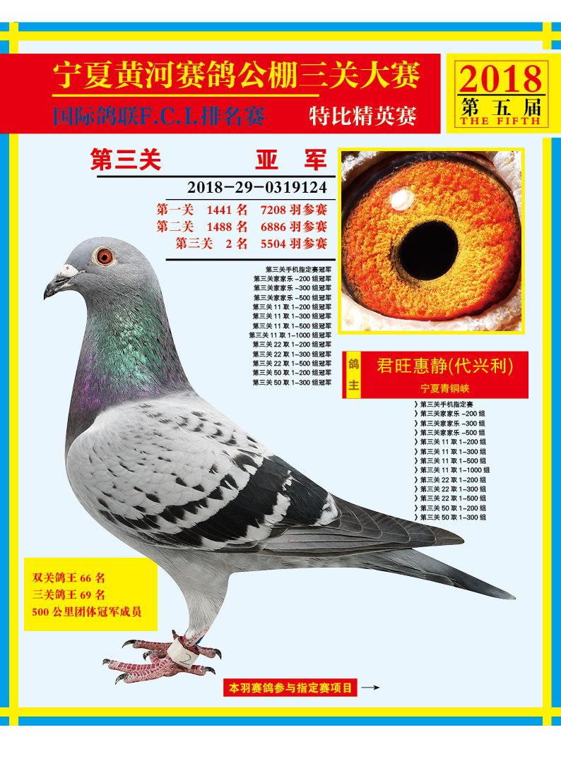 宁夏黄河2018年秋赛相当艰苦,尤其是11月底和12月初的决赛及加站赛,正值天气骤变,阴雨雾霾严重影响了赛鸽归巢的征途。尽管恶劣的天气给比赛带来层层阻碍,黄河赛鸽一如既往发挥艰苦奋斗,勇往直前的战斗精神,成功克服了重重艰险。热身赛200公里7208羽上阵对决,不成英雄便成天落,最后归巢6921羽,归巢率高达96%;第二关330公里预赛,6886羽披挂上阵,大浪淘沙,终有英雄折戟沉沙,最后5399羽成功归返,归巢率78.4%;最关键性的500公里决赛上笼5504羽,选手们再次拿出硬实力,向鸽王冠军发起总攻,最后2451羽归巢,成功打赢了这场决赛冲锋战!根据规程,决赛归巢达到2000羽以上,举办第四关550公里加站赛,1964羽选手在主人期盼的目送下,于12月12日踏上征途,尽管此时已入大雪节气,沿途阴雨大雾横行,然而黄河勇士并未怯懦,并且三天归巢1246羽,用实实在在的成绩证明了自己的优秀品质!